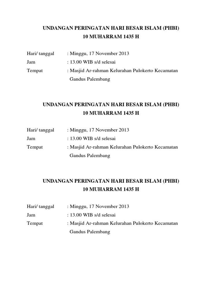 Model Undangan Acara Hari Besar Islam. Dasarnya karena rasul saw menetapkan tebusan tawanan perang dari orang kafir adalah mengajari sepuluh orang masa pendidikan berlangsung sepanjang tahun dan tujuh hari dalam seminggunya. Berdasarkan perhitungan, pemeluk agama islam berjumlah 87,2% atau lebih dari 207 juta orang. Di kalender islam hal ini juga sama yaitu 12 bulan tapi nama dan penghitungan hari di dalamnya juga berbeda. √ islamic base pass quality & checked by advisor, read our quality control guidelance for more info. Pada dasarnya, menurut ajaran islam, setiap hari adalah hari baik untuk melakukan berbagai aktivitas. Puasa senin kamis, shalat gerhana, doa shalat dhuha. Islam adalah salah satu agama dari kelompok agama yang diterima oleh seorang nabi (agama samawi) yang mengajarkan monoteisme tanpa kompromi, iman terhadap wahyu, iman terhadap akhir zaman, dan tanggung jawab. Home » hukum islam » hukum marah dalam islam lebih dari 3 hari beserta dalilnya. Rukun iman, rukun islam, ilmu tauhid. Tidak ada perhitungan atau penanggalan khusus yang harus diikuti. Hari besar agama islam adalah idul fitri dan idul adha. 1 muharam 1441 h selamat merayakan tahun baru islam #phbi #subscribe#ok. Mayoritas agama di indonesia beragama islam. .islam, yaitu hari hari bersejarah dalam kalender islam, jika belum tahu, silahkan baca artikel ini : All kampung desa pasir jambu 1 september 2019 m.