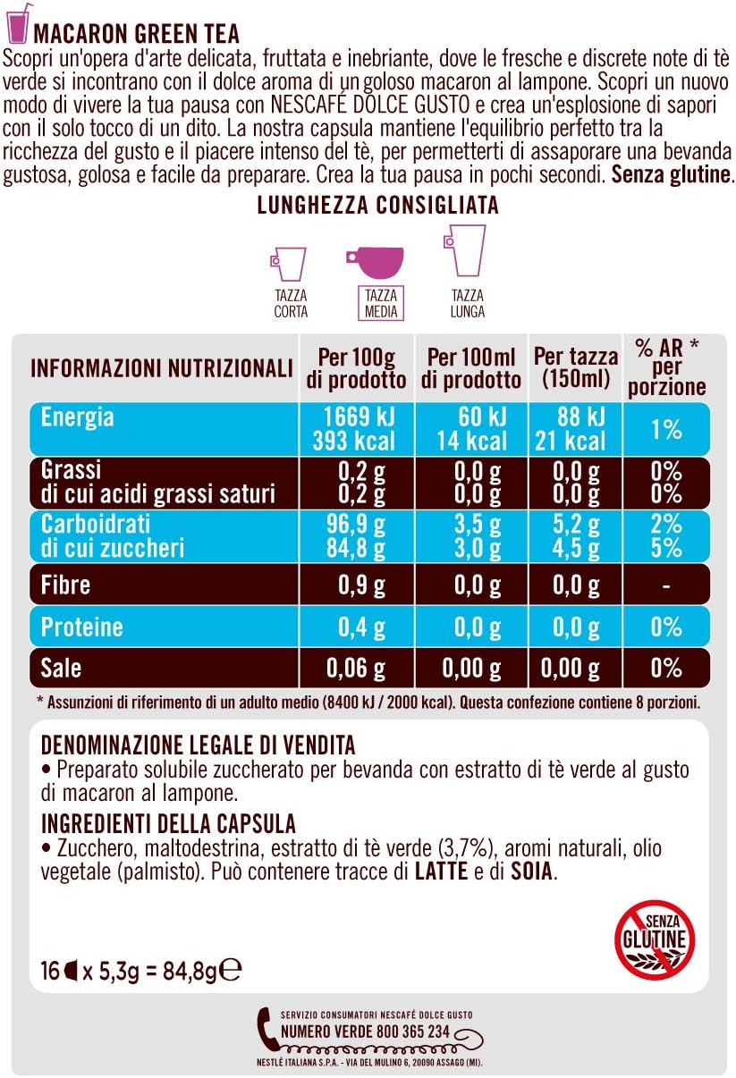 Nescafe Dolce Gusto Macaron Green Tea Te Verde Al Gusto Di Macaron Al Lampone 16 Capsule 16 Tazze Everli : Nescafé® dolce gusto® green tea latte capsule.